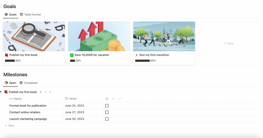 This comprehensive Notion template is designed to supercharge your goal-setting and tracking process. Whether you're an individual striving for personal achievements or a team working towards collective objectives, ZenFlo's Goal Tracker has you covered.